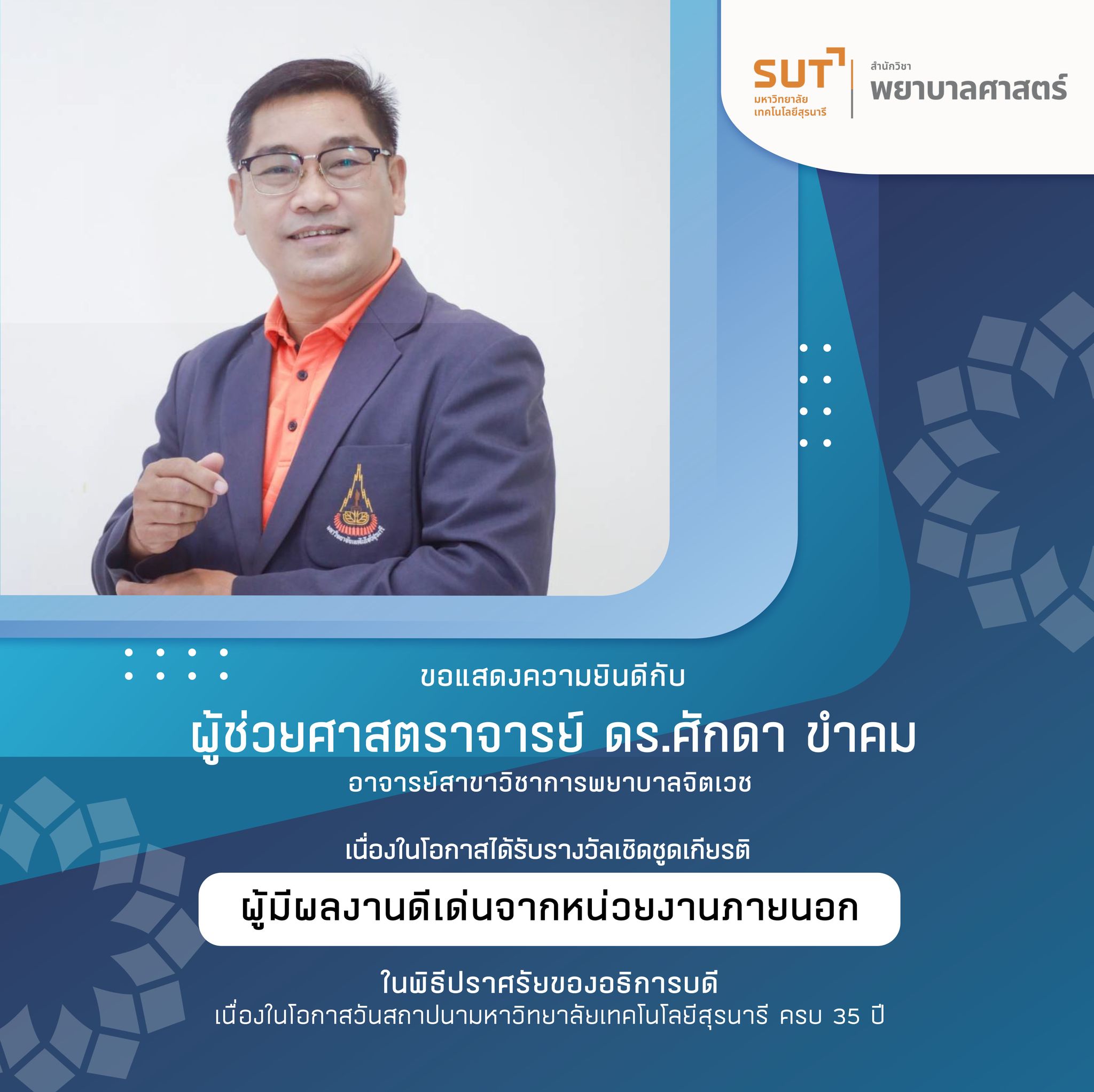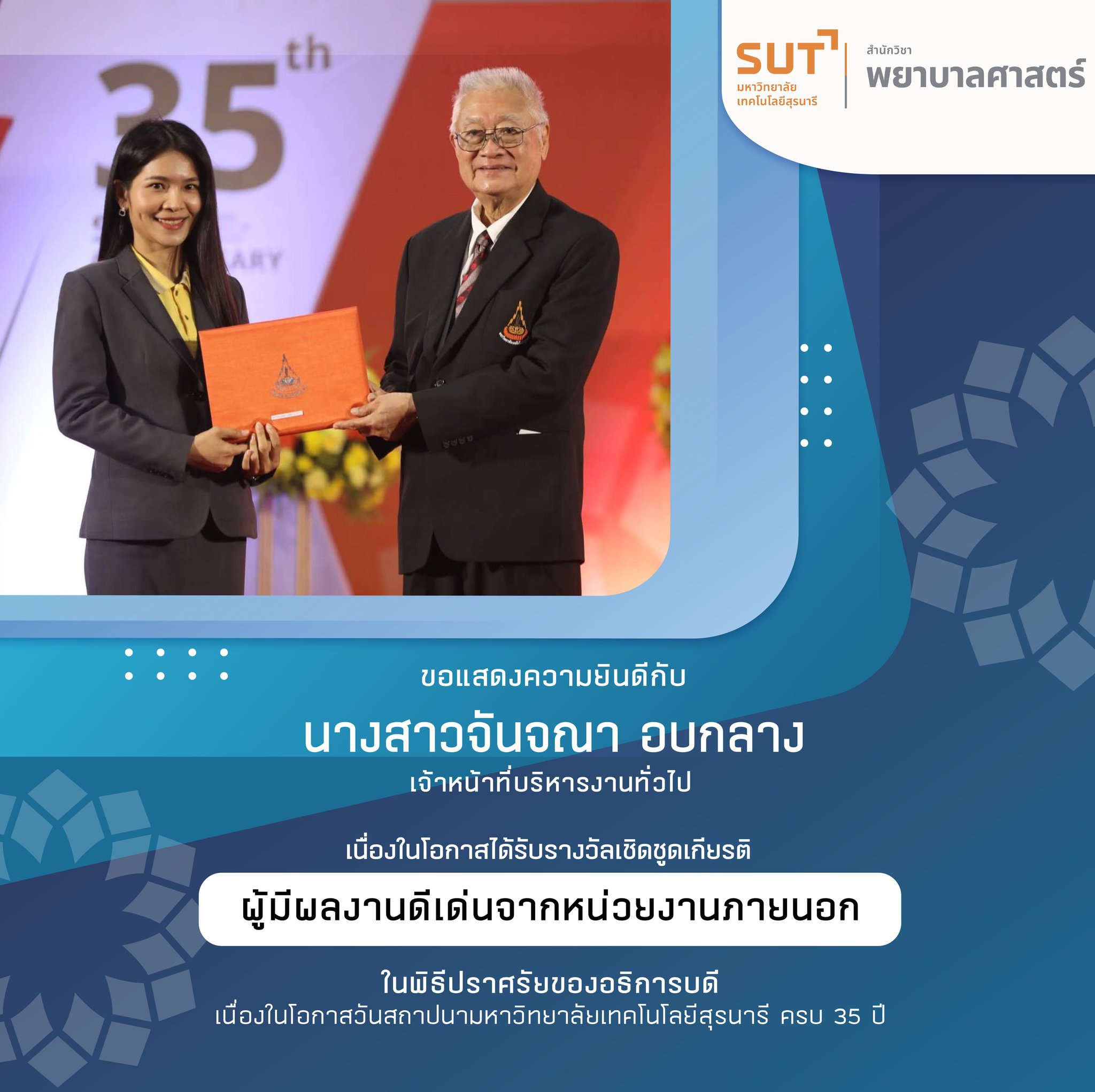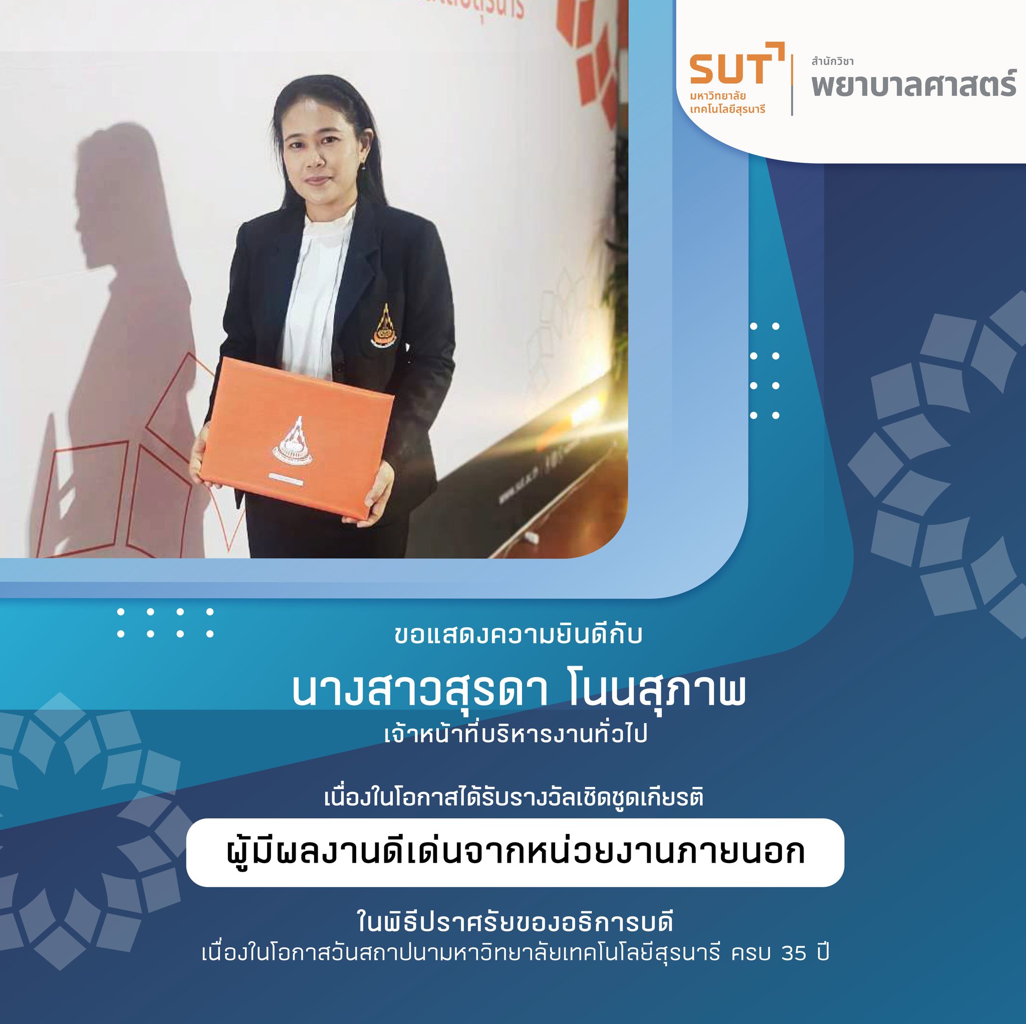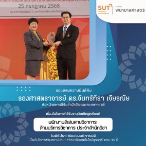ได้รับโล่ประกาศเกียรติคุณ พนักงานดีเด่นสายวิชาการ ด้านบริการวิชาการ ประจำสำนักวิชา