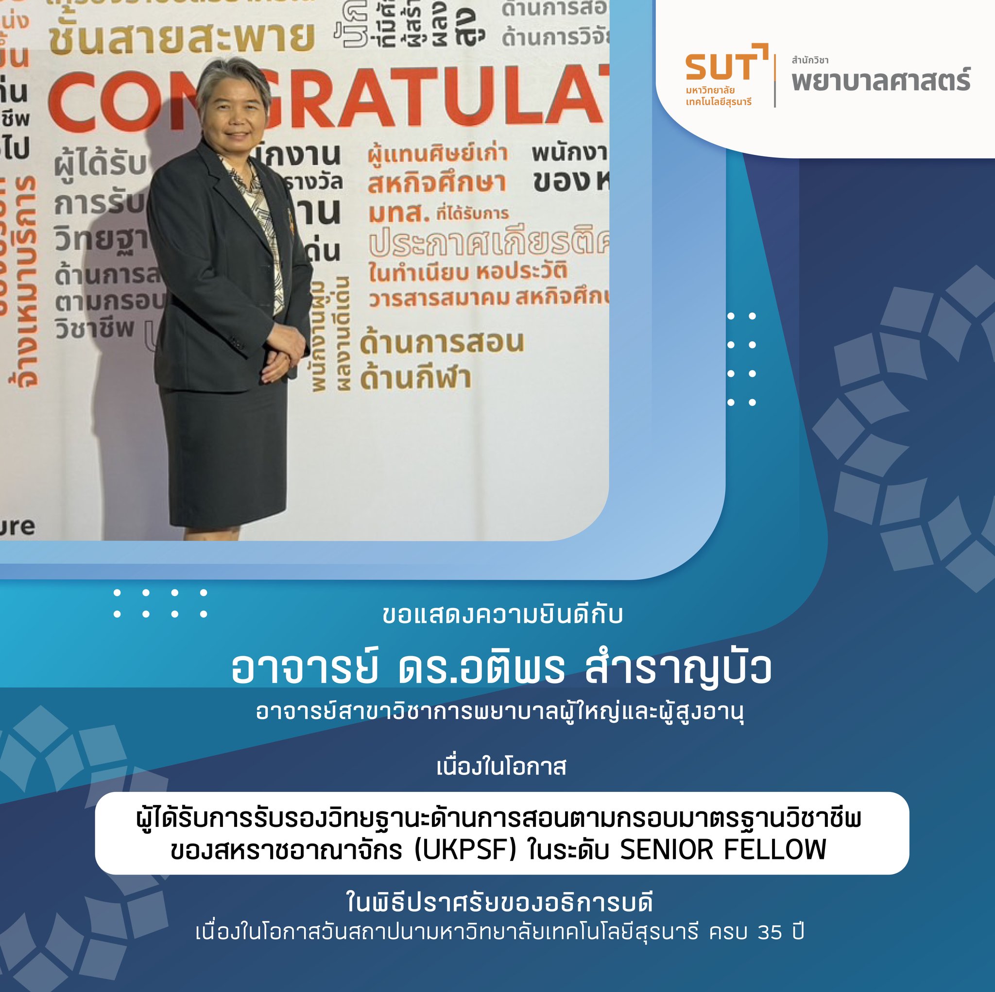 – ผู้ได้รับการรับรองวิทยฐานะด้านการสอนตามกรอบมาตรฐานวิชาชีพของสหราชอาณาจักร (UKPSF) ในระดับ Senior Fellow