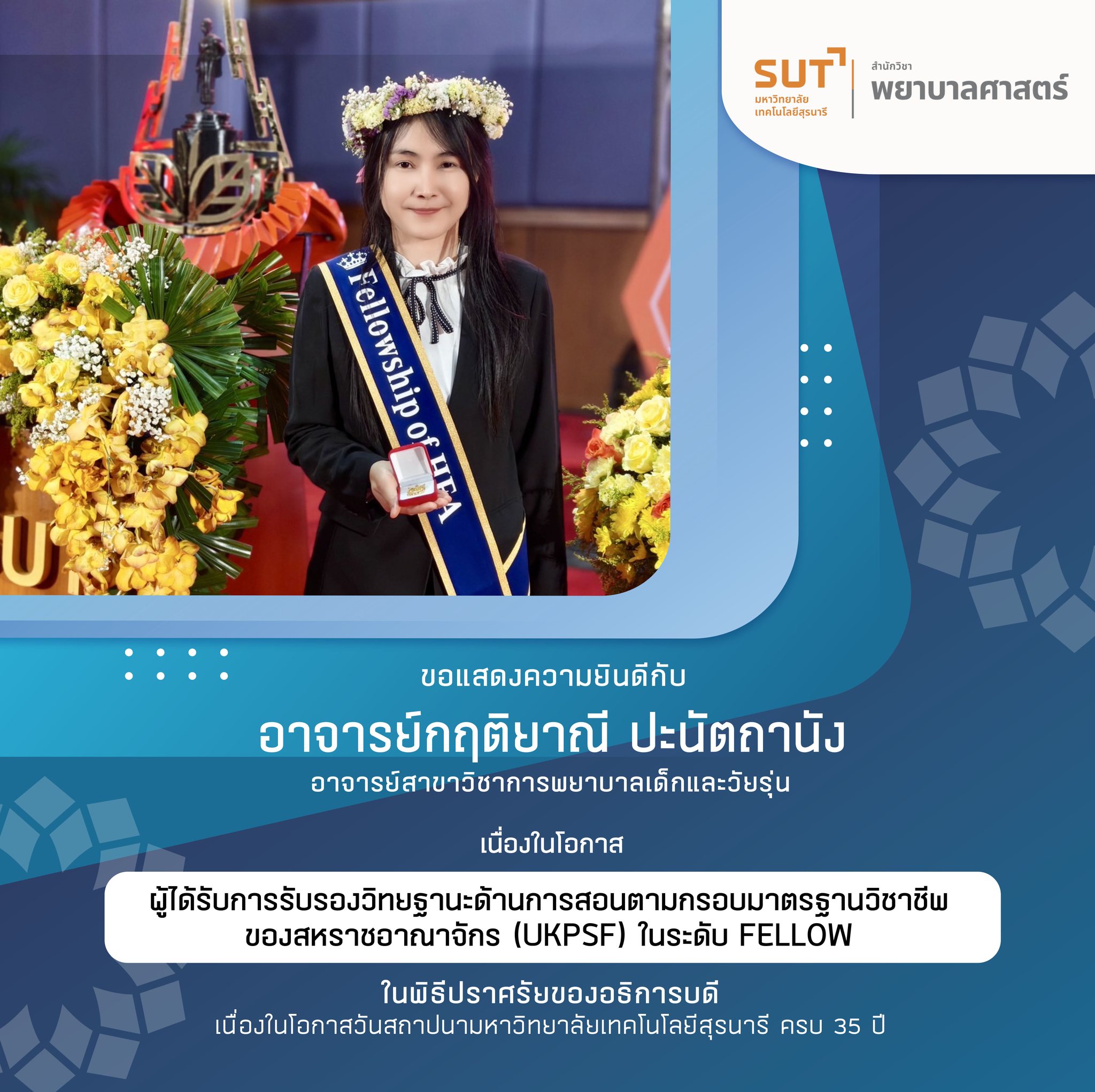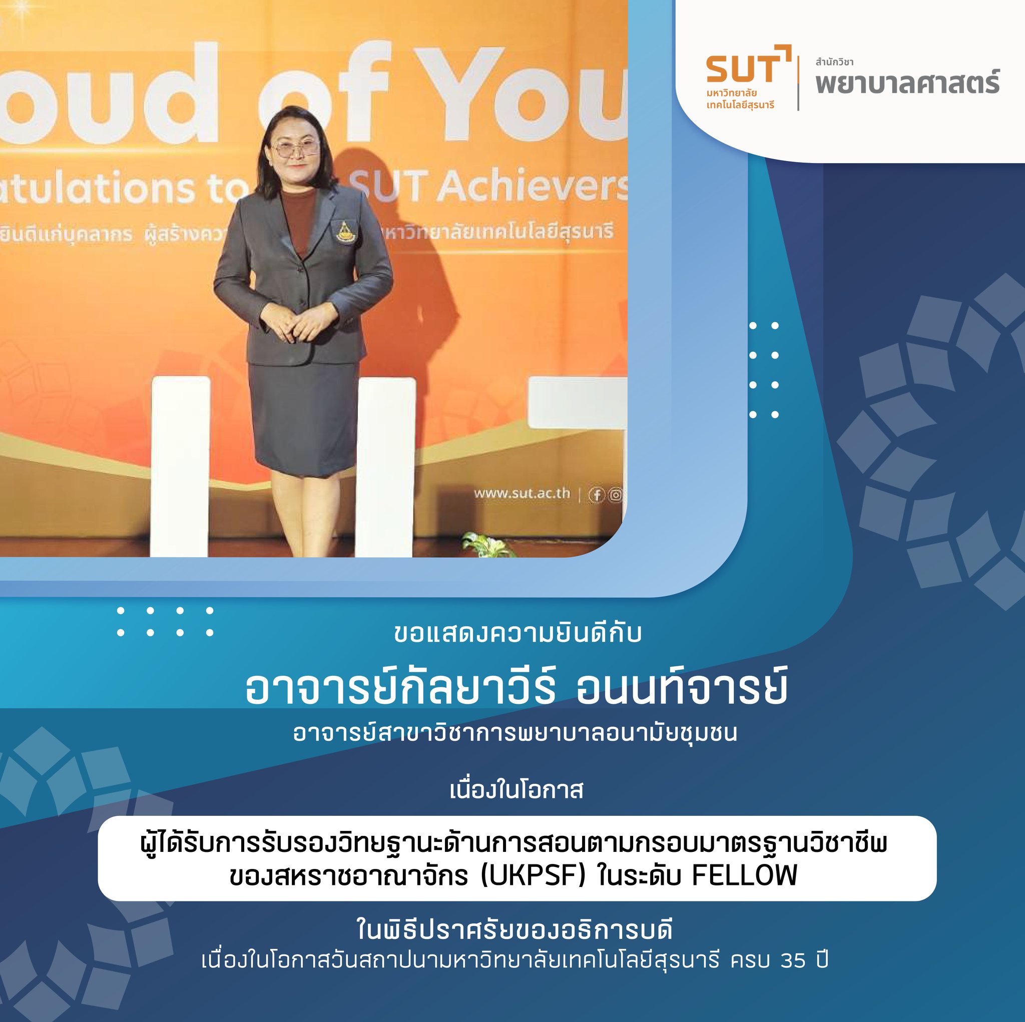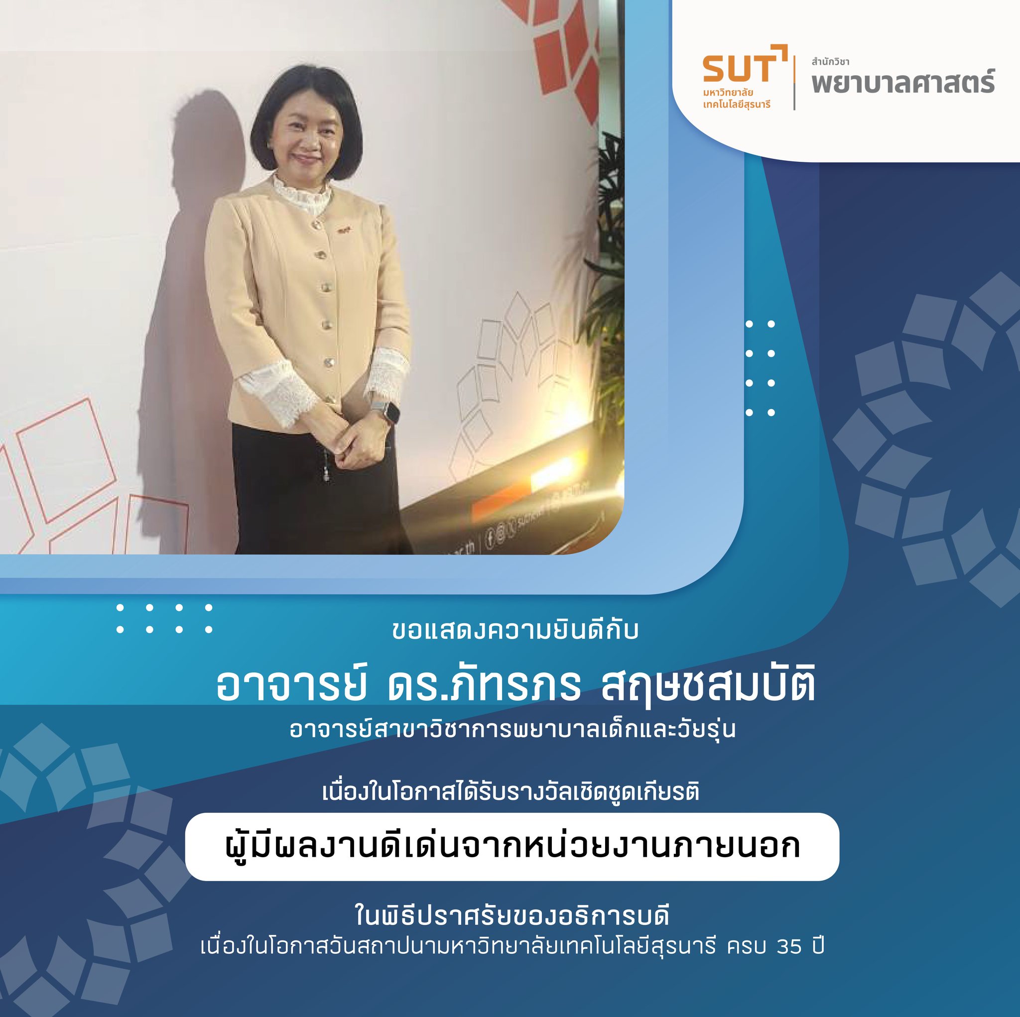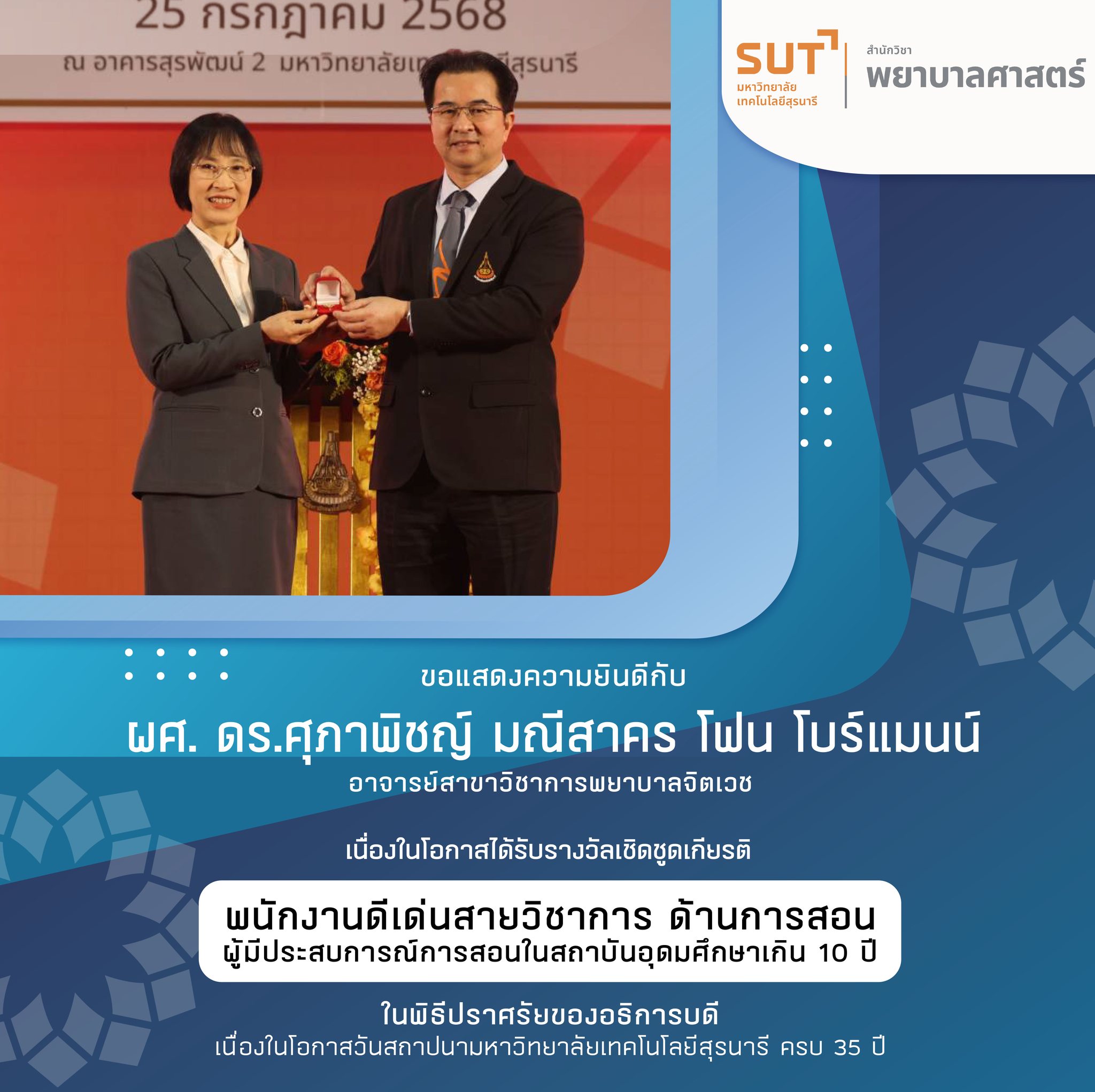 ได้รางวัลเชิดชูเกียรติ พนักงานดีเด่นสายวิชาการด้านการสอน สำหรับผู้มีประสบการณ์การสอนเกิน 10 ปี