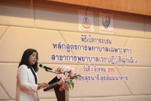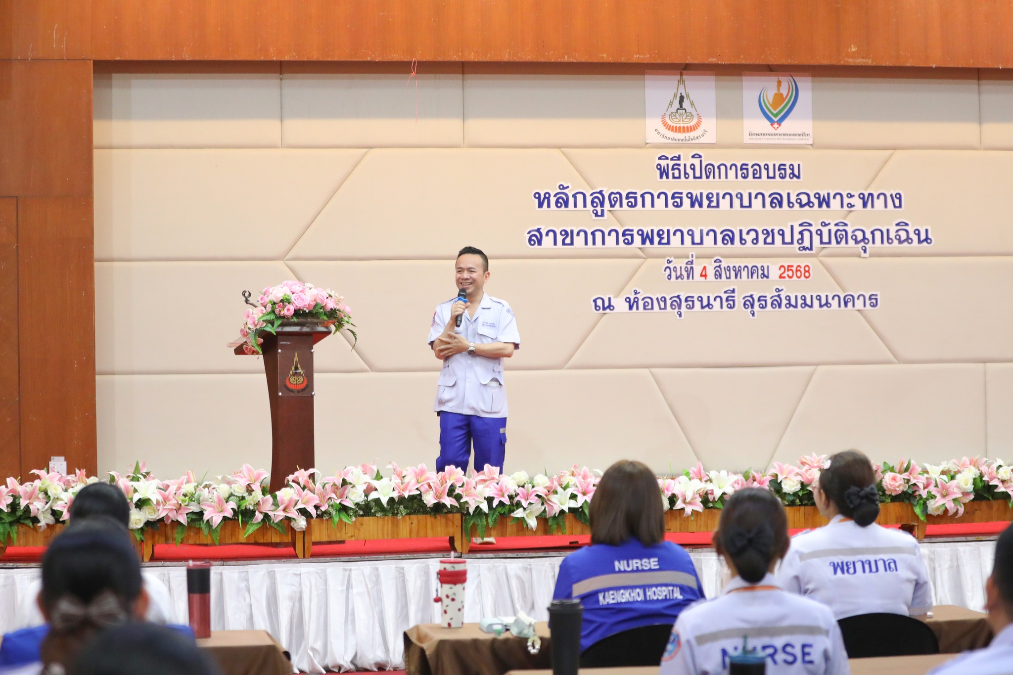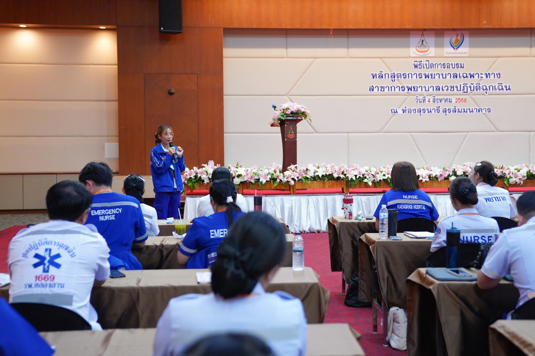 รองศาสตราจารย์ ดร.ยุพาพร รักสกุลพิวัฒน์ รองอธิการบดีฝ่ายวิชาการและประกันคุณภาพ มหาวิทยาลัยเทคโนโลยีสุรนารี (มทส.) เป็นประธานเปิดการอบรม “หลักสูตรการพยาบาลเฉพาะทาง สาขาการพยาบาลเวชปฏิบัติฉุกเฉิน รุ่นที่ 4 ประจำปีการศึกษา 2568”